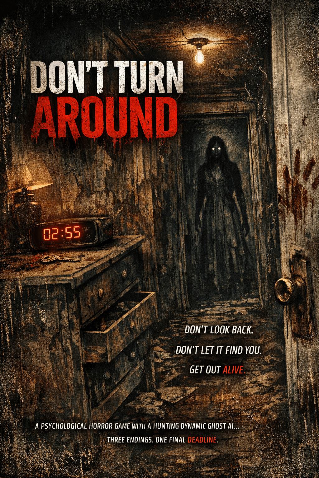 Don't Turn Around is a first-person psychological horror experience set inside a decaying abandoned house. You wake up with no memory of how you got there. The doors are locked. Something is already watching.